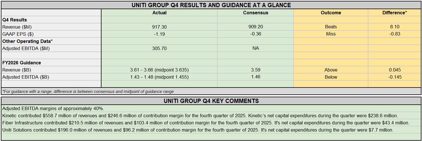 Earnings Snapshot: Uniti Group reports mixed Q4 results; introduces FY26 outlook