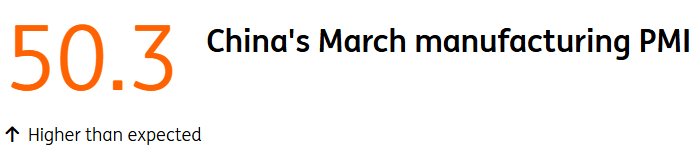 China's official manufacturing purchasing managers’ index edged down slightly to 50.3 in April from 50.4 but still came in stronger than both our forecast and broader market expectations....